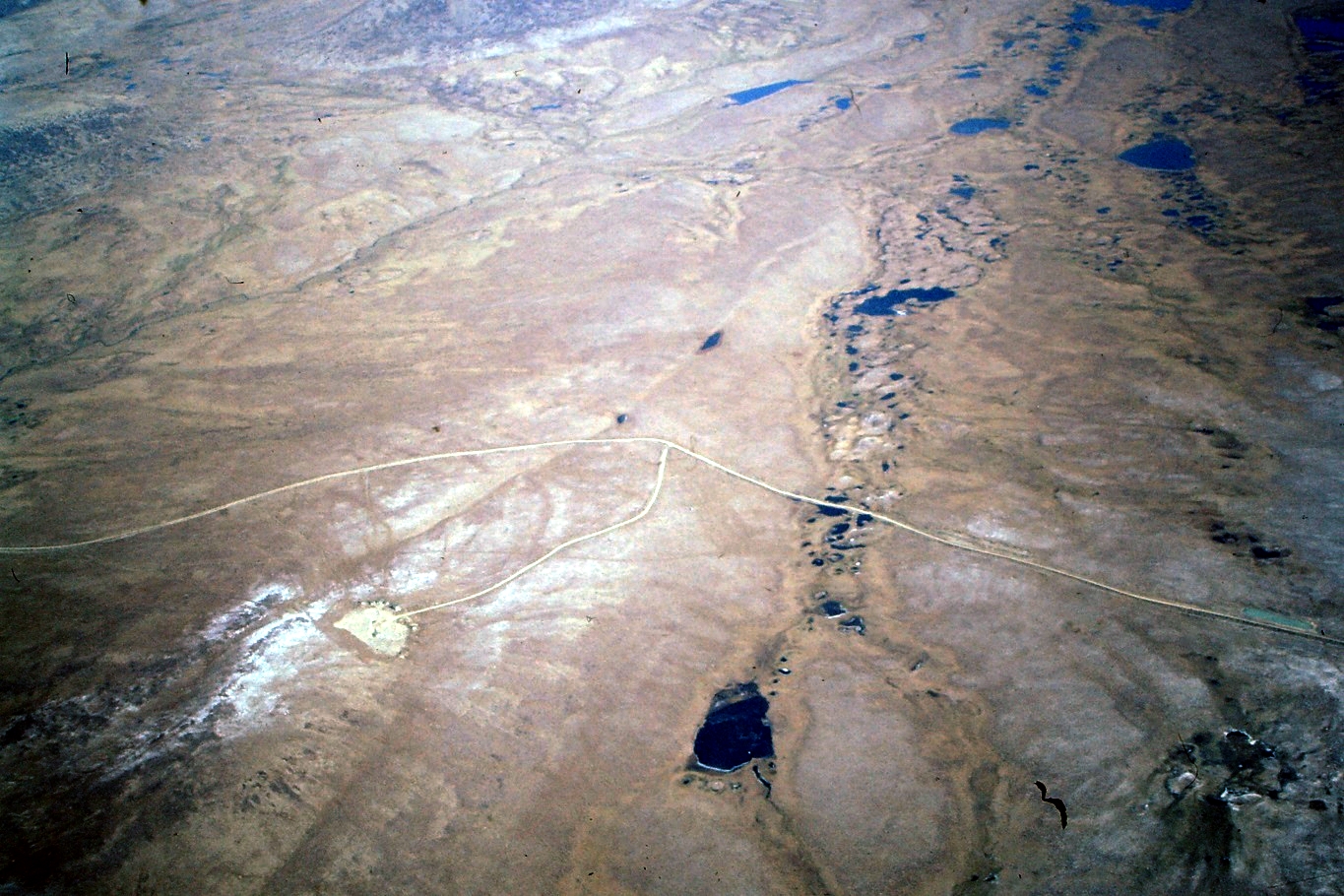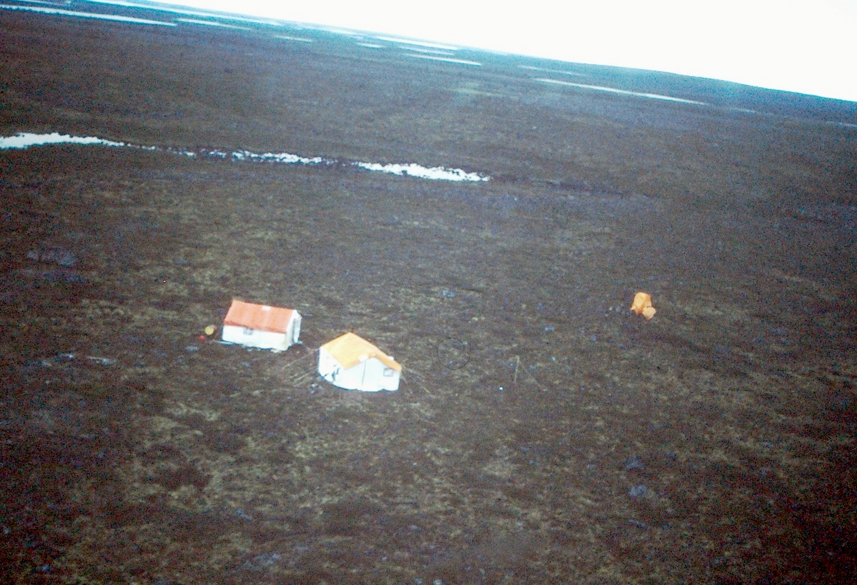 68. Bird's eye view of UG Lake camp, spring thaw NWT (1980)